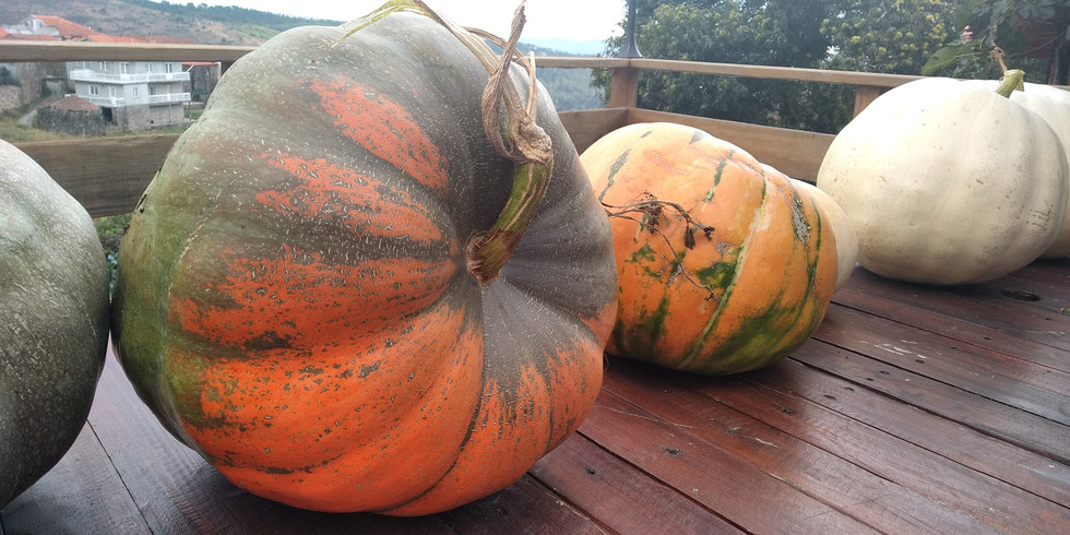 As abóboras, encontram-se empilhadas dentro de uma canastro, para que possam aguentar-se até a semana do Natal, quando fazemos as nossas aguarias serranas, próprias da época.